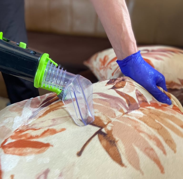 Дълбоко изтупване на меки мебели до 40 см в дълбочина, при което се отстраняват прах, акари, мъртва кожа, косми и други алергени.